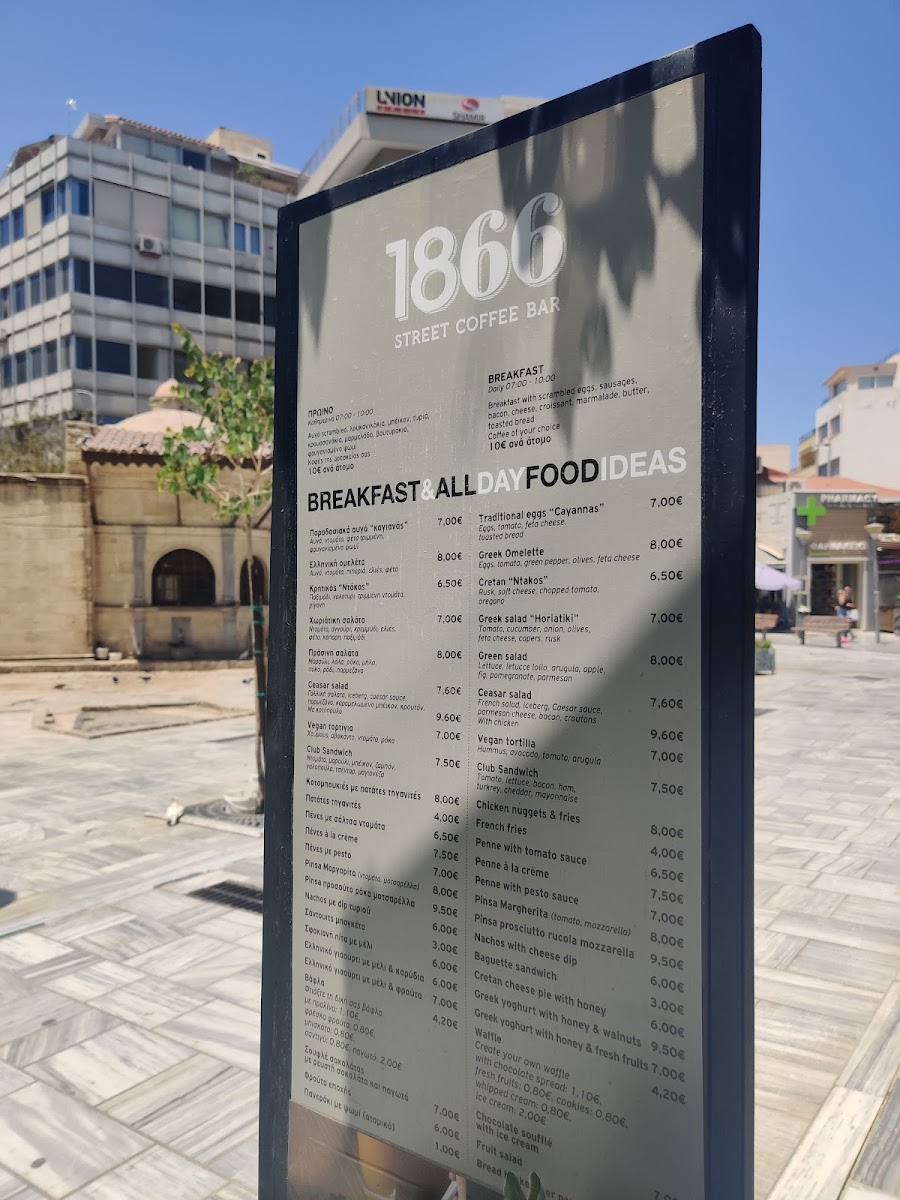 Welcome to 1866 Street Coffee Bar, an inviting cafe nestled in the heart of Iraklio, Greece. Located on Pl. Kornarou 43, this coffee haven captures the essence of the city with its cozy atmosphere and vibrant outdoor seating, perfect for soaking in the historic ambiance.